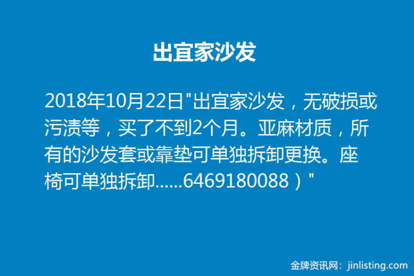 “出宜家沙发,无破损或污渍等,买了不到2个月。亚麻材质,所有的沙发套或靠垫可单独拆卸更换。座椅可单独拆卸成2个小沙发或一个大沙发。原价$699 现$300出,纽约自取。 联系人:Emma (6469180088)”