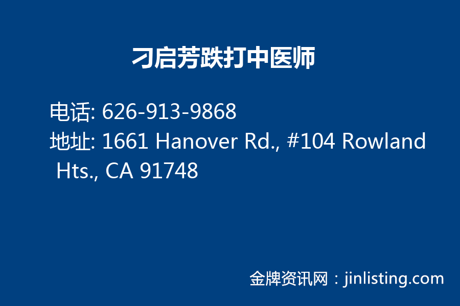 地址:1661 Hanover Rd。,#104 Rowland Hts。,CA 91748 電話:626-913-9868