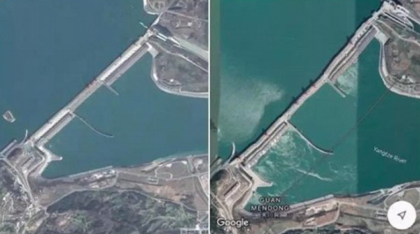 谷歌卫星照片显示,三峡大坝已严重变形,加上目前面临的这场罕见大洪水,专家预测三峡大坝可能随时有溃坝的危险!危及长江中下游几亿人!