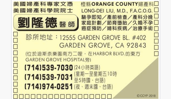 劉隆德醫師擁有美國婦產科專家文憑丶美國婦產科學院院士。橙縣ORANGE COUNTY婦產科。我們有驗孕即知丶產前檢查丶產科分娩丶家庭計畫丶節育墮胎丶久婚不孕丶癌症預防丶婦科疾病丶治療手術…等等。