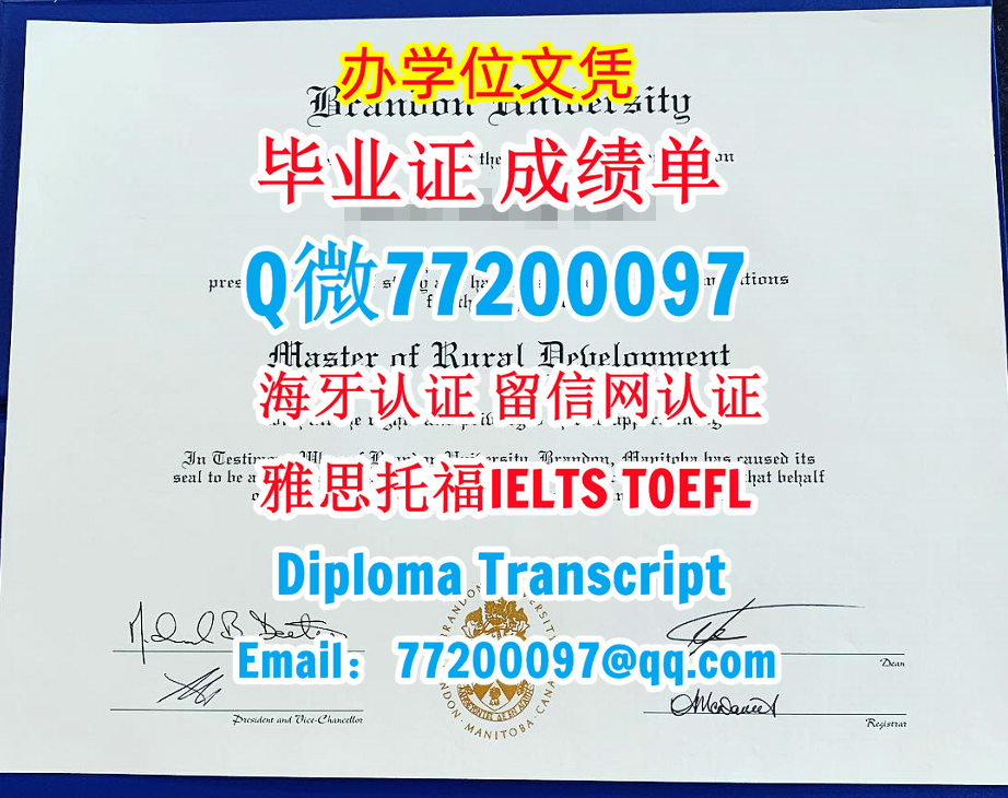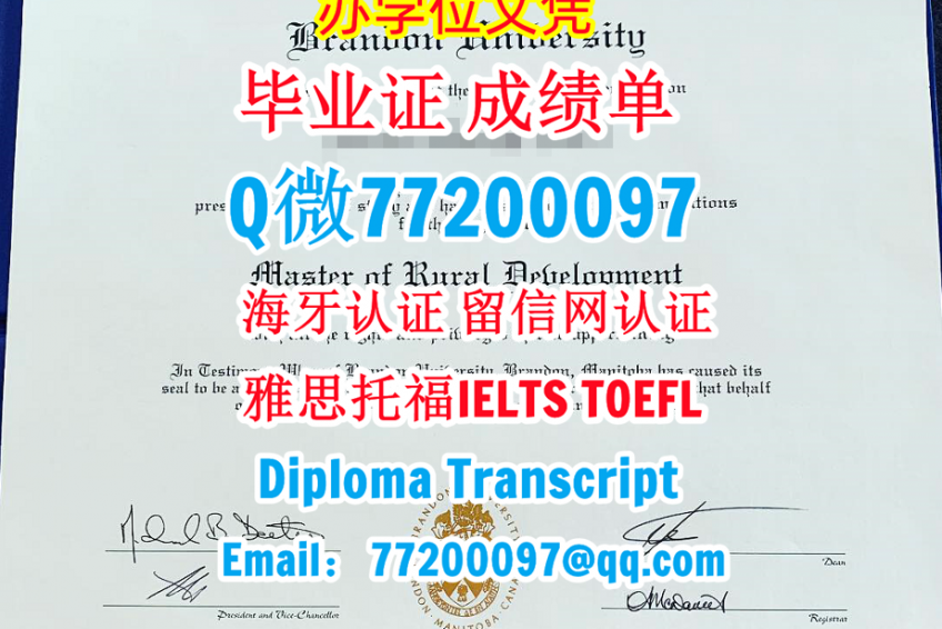 办本科硕士学历Brandon学位证书做布兰登大学文凭证书Q/微:77200097有BU文凭证书精仿Brandon毕业证书能办BU成绩单制作布兰顿大学学位证书offer雅思托福The Brandon University Diploma Degree Transcript