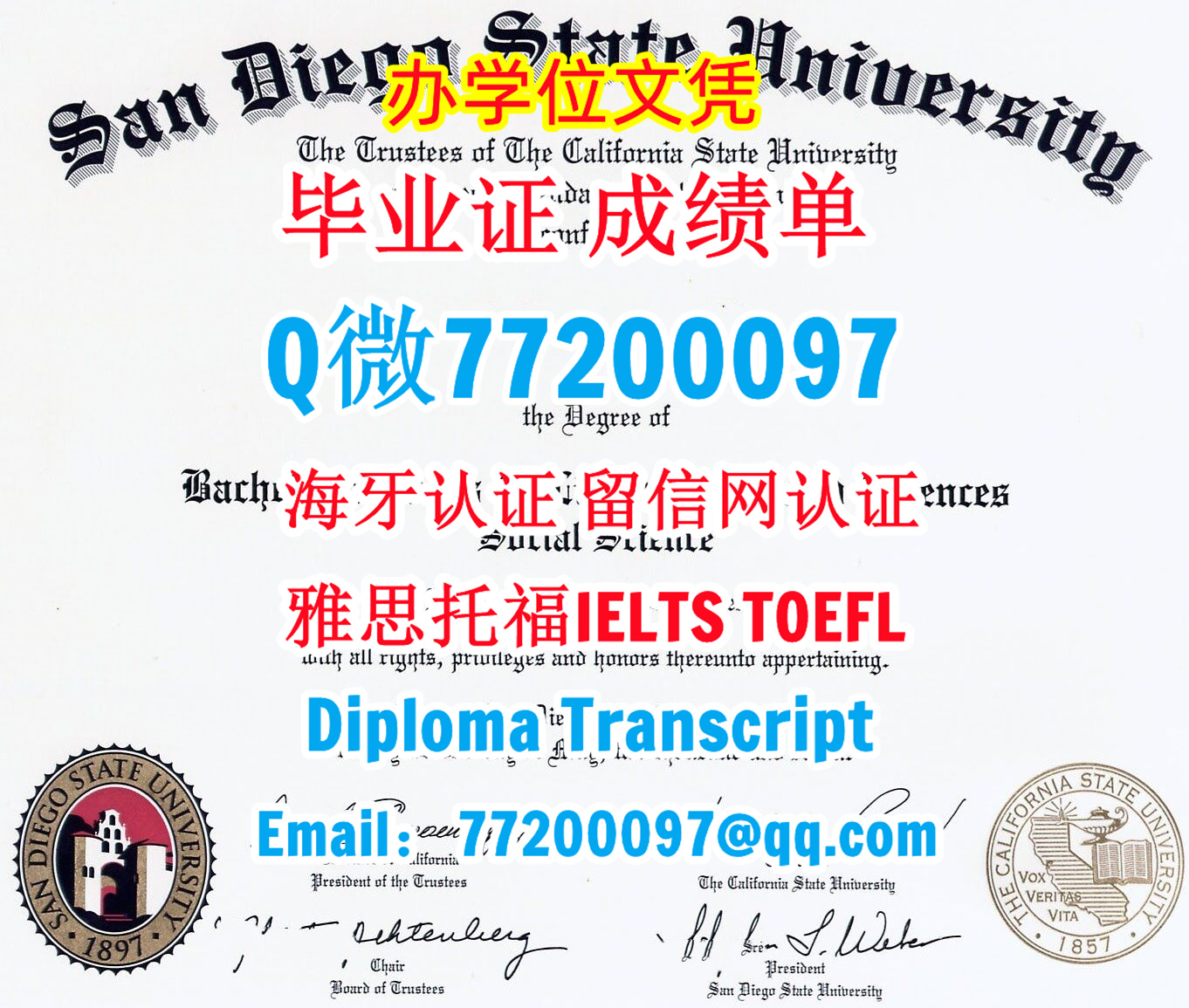 办本科硕士学历SD State学位证书做圣地亚哥州立大学文凭证书Q/微:77200097有SDSU文凭证书精仿SDSU毕业证书能办SDSU成绩单制作圣地亚哥州立大学学位证书雅思托福San Diego State University Bachelor/Master Diploma Degree Transcript