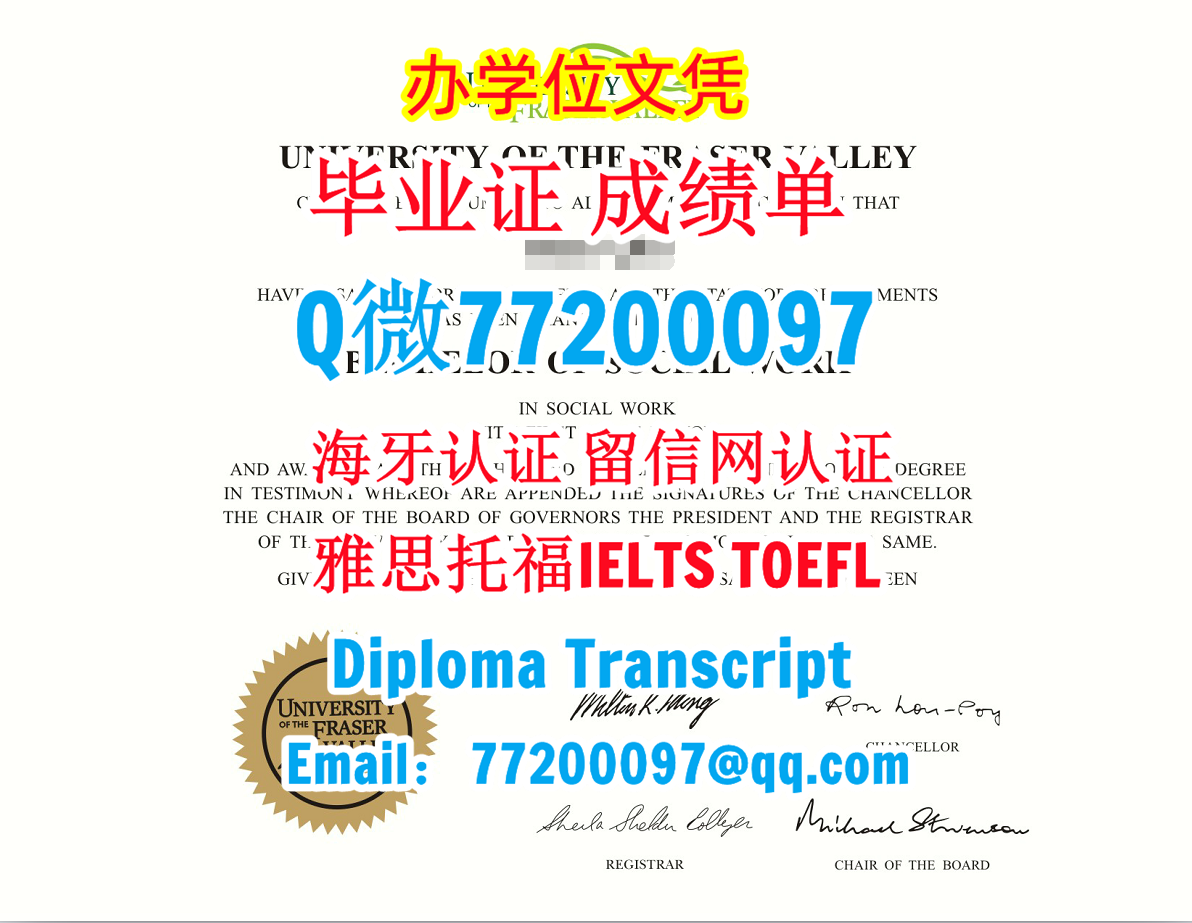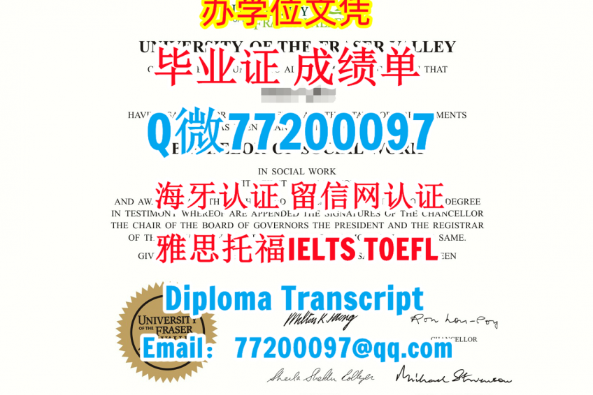 办本科硕士学历UFV学位证书做菲莎河谷大学文凭证书Q/微:77200097有UFV文凭证书精仿UFV毕业证书能办UFV成绩单制作菲莎河谷大学学位证书offer雅思托福University of the Fraser Valley Diploma Degree Transcript