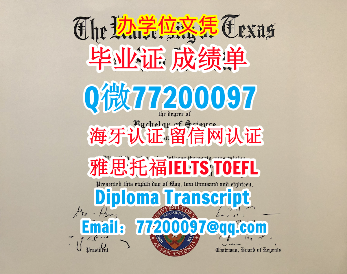 办本科硕士学历UTSA学位证书做德州大学圣安东尼奥分校文凭证书Q/微:77200097有UTSA文凭证书精仿UTSA毕业证书能办UTSA成绩单制作德克萨斯大学圣安东尼奥分校学位证书雅思托福University of Texas at San Antonio Bachelor/Master Diploma Degree Transcript