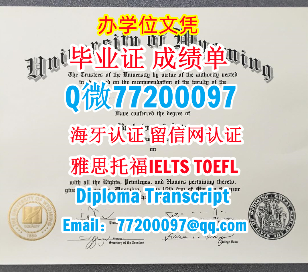 办本科硕士学历UWyo学位证书做怀俄明大学文凭证书Q/微:77200097有UWyo文凭证书精仿UW毕业证书能办UWyo成绩单制作怀俄明大学学位证书雅思托福University of Wyoming Bachelor/Master Diploma Degree Transcript