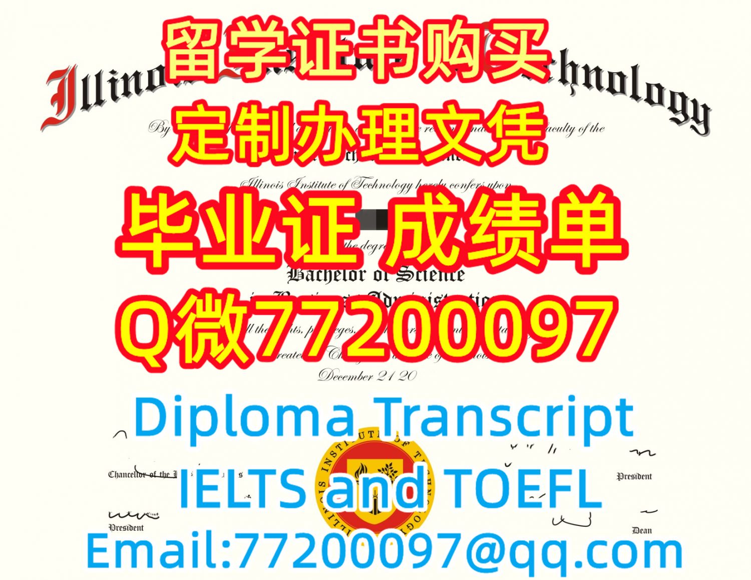 Q/微:77200097办毕业文凭IIT毕业证书制作伊利诺伊理工学院毕业证书有IIT文凭证书精仿IIT学位证书能办IIT成绩单伪造伊利诺伊理工学院文凭证书雅思托福Illinois Institute of Technology Bachelor/Master Diploma Degree Transcript