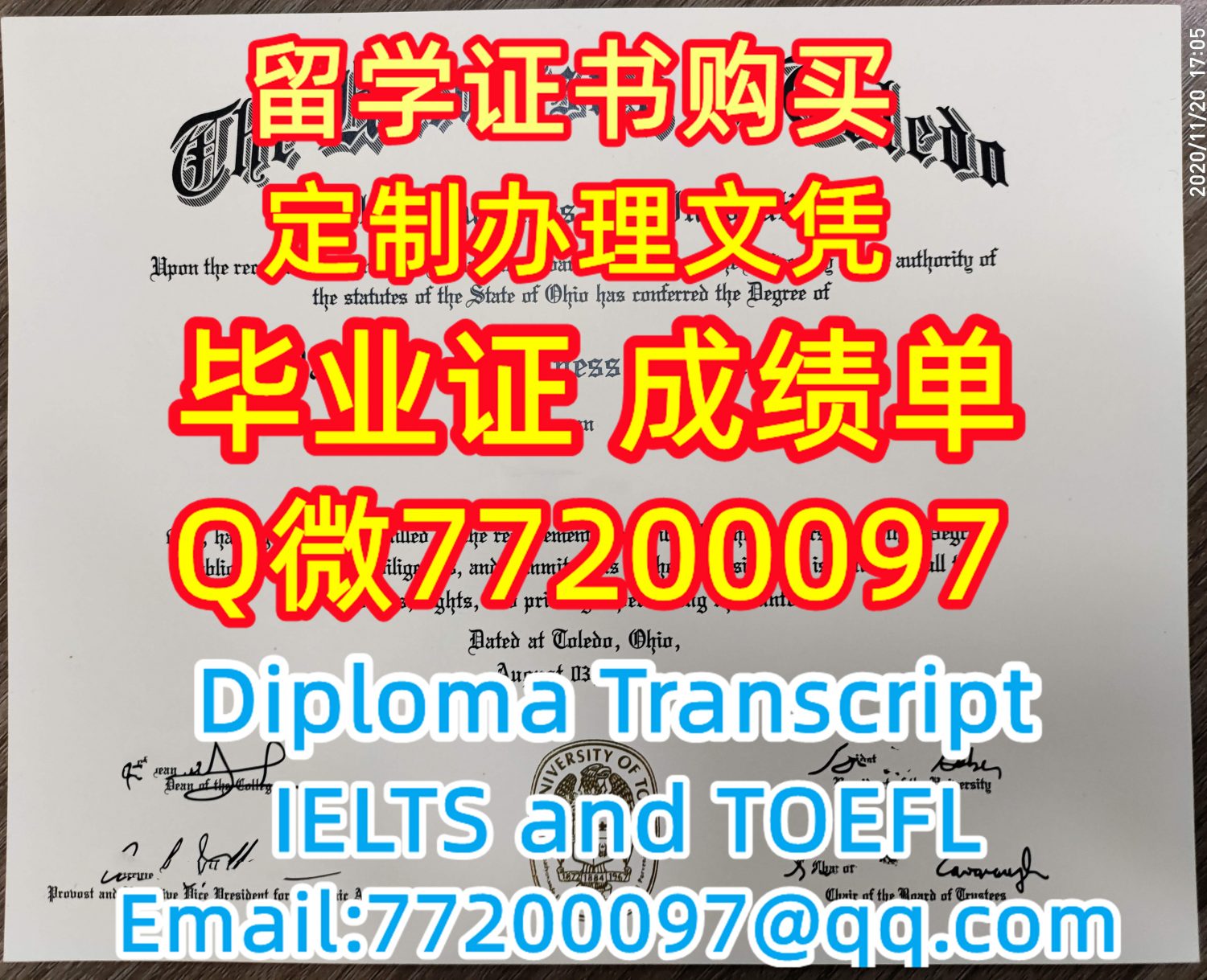 Q/微:77200097办毕业文凭UT毕业证书制作托莱多大学毕业证书有UToledo文凭证书精仿UToledo学位证书能办UT成绩单伪造托莱多大学文凭证书雅思托福The University of Toledo Bachelor/Master Diploma Degree Transcript