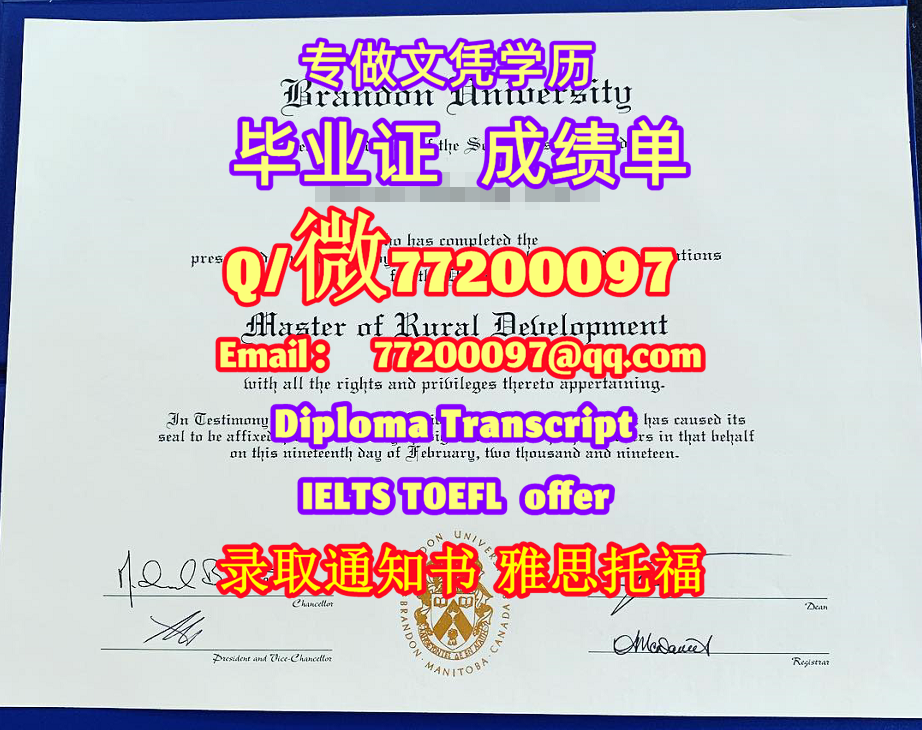 加拿大学历升级Brandon毕业证书定制布兰登大学学位证书Q/微:77200097有BU文凭证书精仿Brandon学位证书能办BU成绩单制作布兰顿大学文凭证书offer雅思托福The Brandon University Diploma Degree Transcript