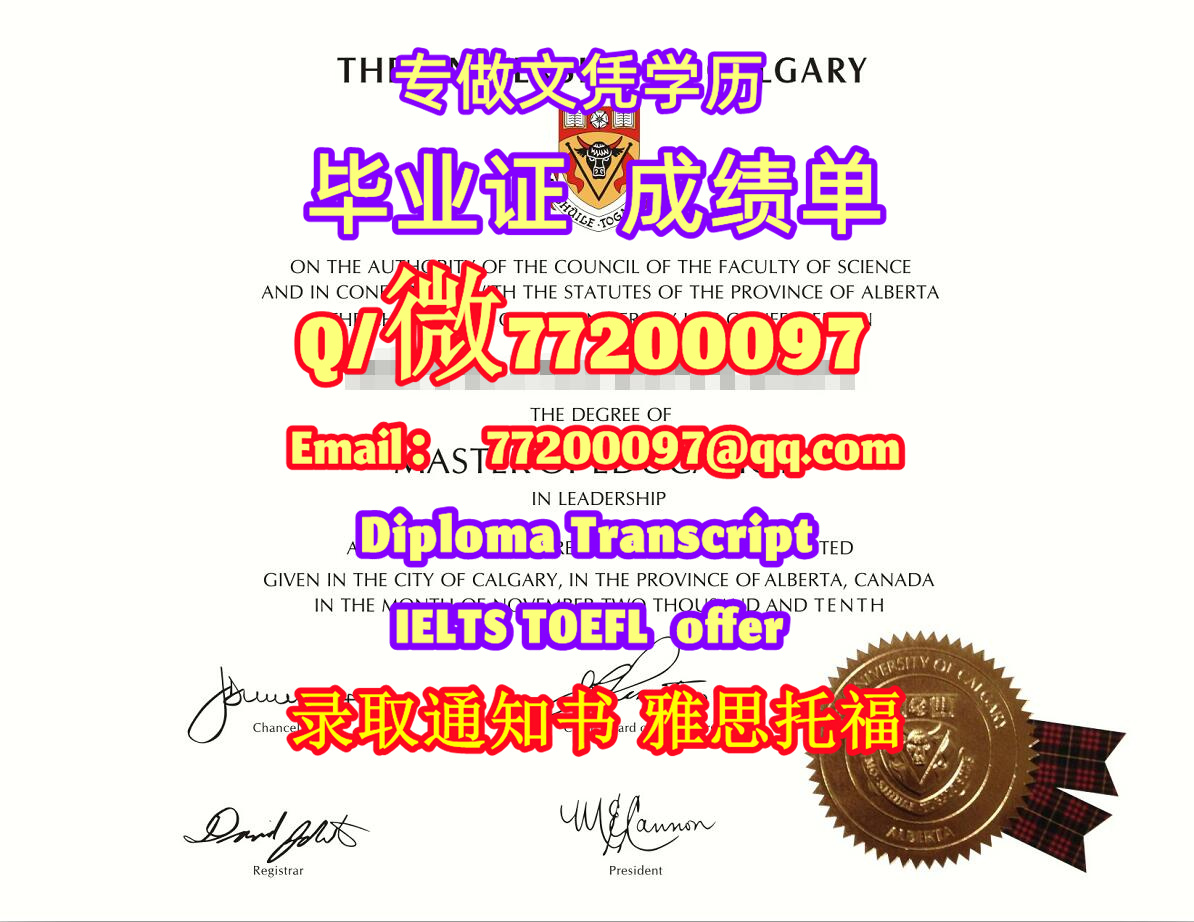 加拿大学历升级Calgary毕业证书定制卡尔加里大学学位证书Q/微:77200097有Calgary文凭证书精仿Calgary学位证书能办Calgary成绩单制作卡尔加里大学文凭证书offer雅思托福University of Calgary Diploma Degree Transcript