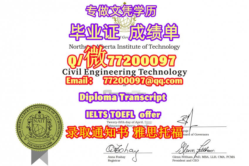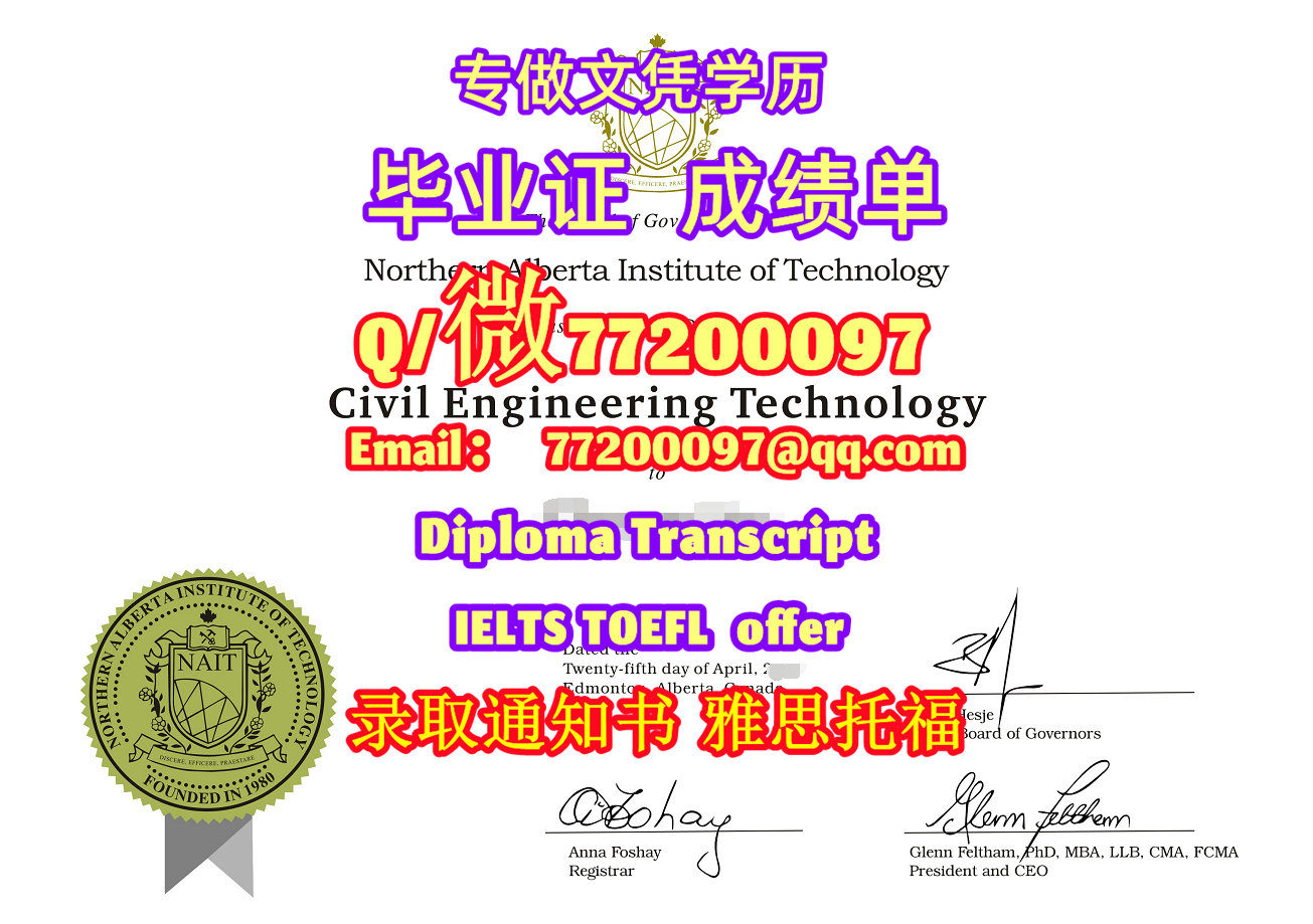 加拿大学历升级NAIT毕业证书定制北阿尔伯塔理工学学位证书Q/微:77200097有NAIT文凭证书精仿NAIT学位证书能办NAIT成绩单制作北阿尔伯塔理工学文凭证书offer雅思托福Northern Alberta Institute of Technology Diploma Degree Transcript