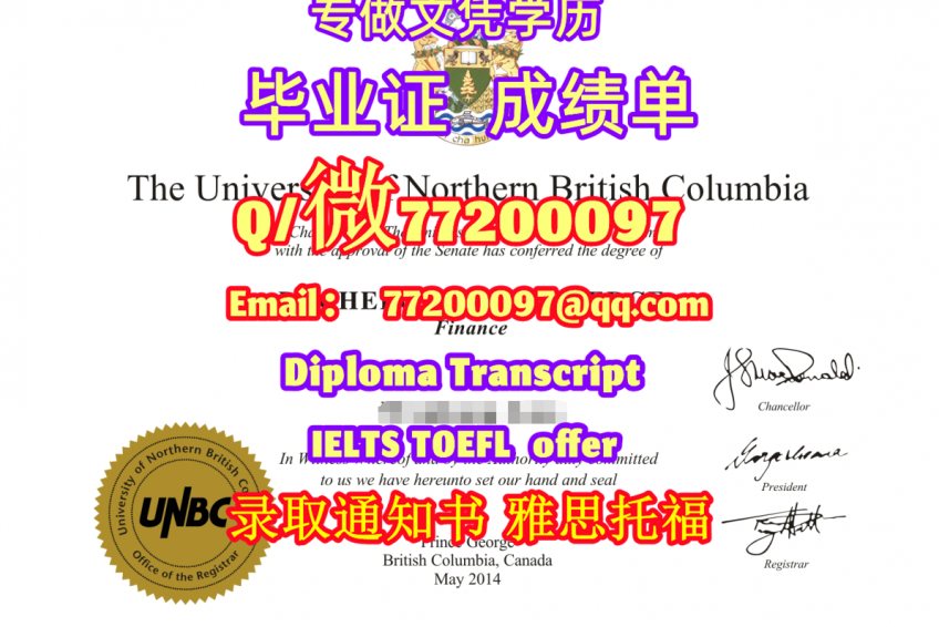 加拿大学历升级UNBC毕业证书定制北英属哥伦比亚大学学位证书Q/微:77200097有UNBC文凭证书精仿UNBC学位证书能办UNBC成绩单制作北英属哥伦比亚大学文凭证书offer雅思托福University of Northern British Columbia Diploma Degree Transcript
