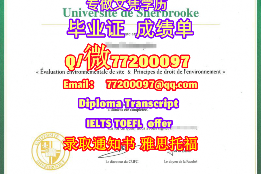 加拿大学历升级uSherbrooke毕业证书定制谢布克大学学位证书Q/微:77200097有uSherbrooke文凭证书精仿uSherbrooke学位证书能办uSherbrooke成绩单制作谢布克大学文凭证书offer雅思托福University de Sherbrooke Diploma Degree Transcript