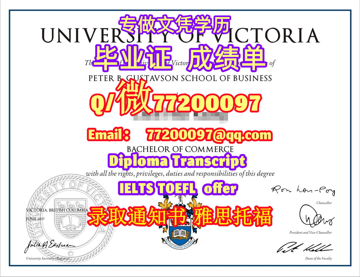 加拿大学历升级UVic毕业证书定制维多利亚大学学位证书Q/微:77200097有UVic文凭证书精仿UVic学位证书能办UVic成绩单制作维多利亚大学文凭证书offer雅思托福University of Victoria Diploma Degree Transcript