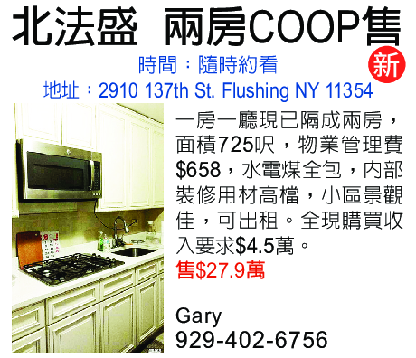 北法拉盛 兩房Coop 929-402-6756