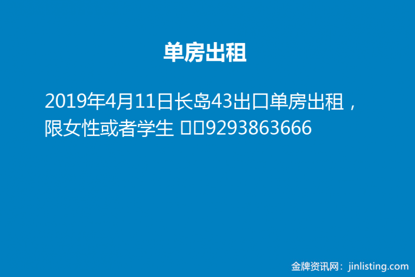 长岛43出口单房出租,限女性或者学生 ☎️9293863666