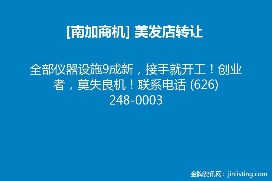 [南加商机] 美发店转让,全部仪器设施9成新,接手就开工!创业者,莫失良机!