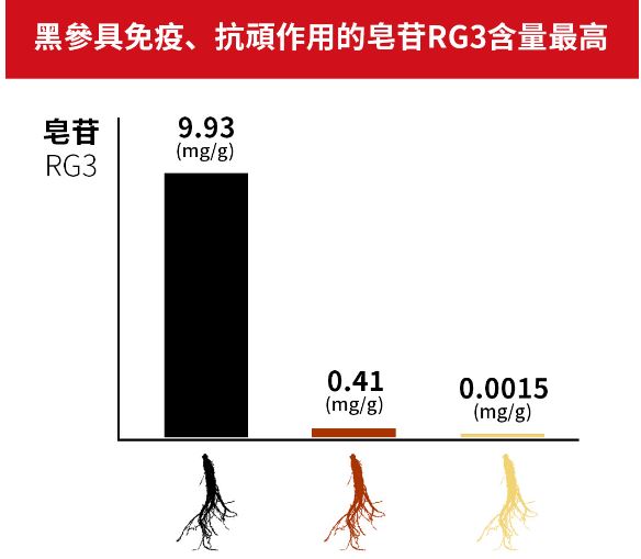 真生黑參皂苷成份是白參和紅參的15和44倍