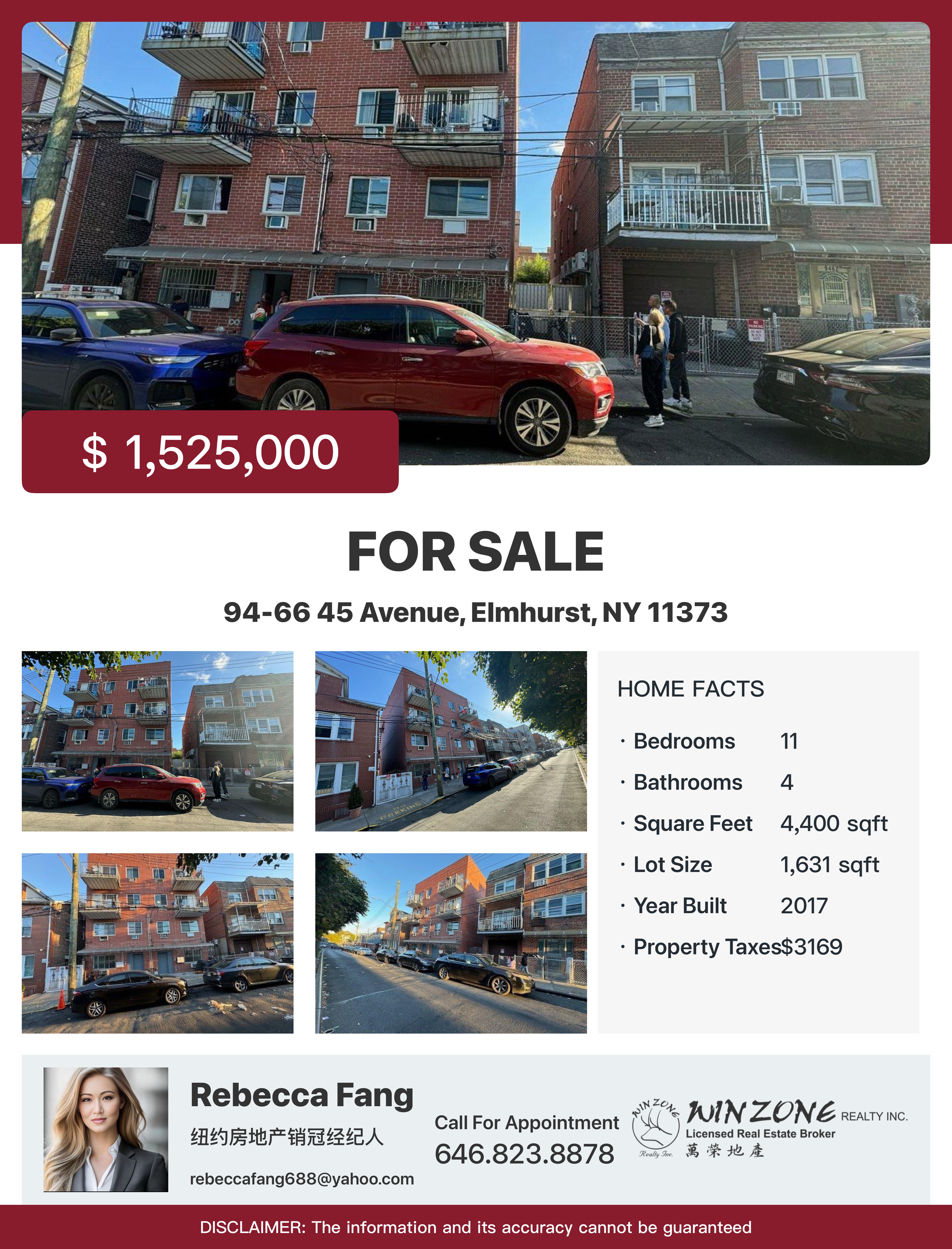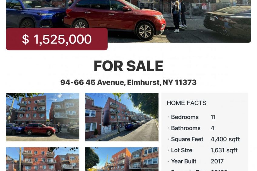 四家庭钢筋水泥结构地面四层加地下室,近Junction blvd 7 号 地铁站/每个单元的电煤电独立有房客自付,
