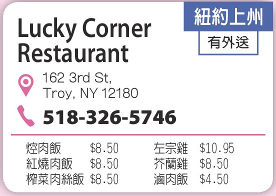 台湾旺角Lucky Corner Restaurant  (518) 326-5746