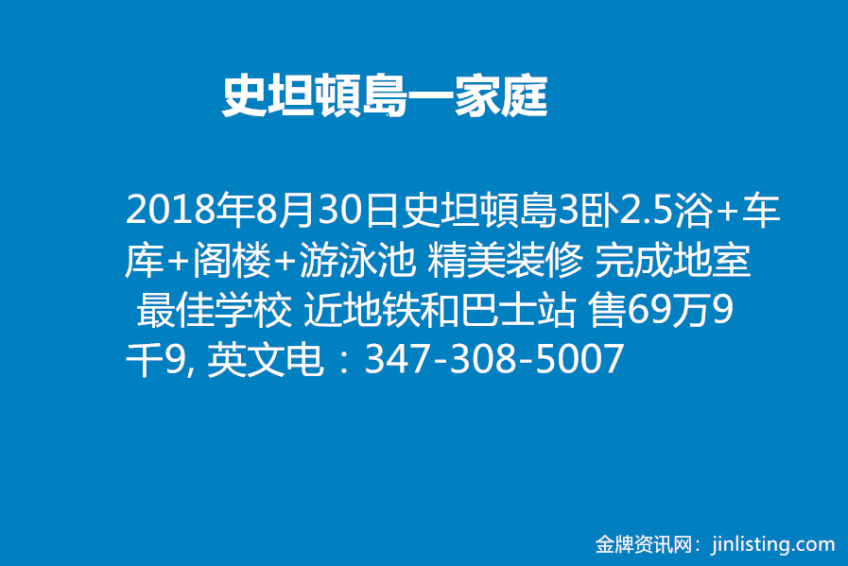 3卧2.5浴+车库+阁楼+游泳池,屋1,820平方英尺,地4,264平方英尺,精美装修,大理石大型起居/用餐組合,完成地室,最佳学校,近地铁和巴士站,售69万9千9