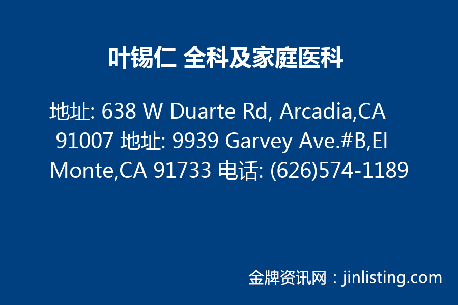 叶锡仁 全科及家庭医科(626)574-1189