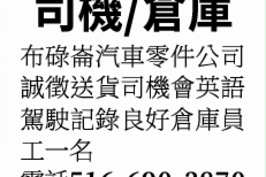 誠徵送貨司機會英語