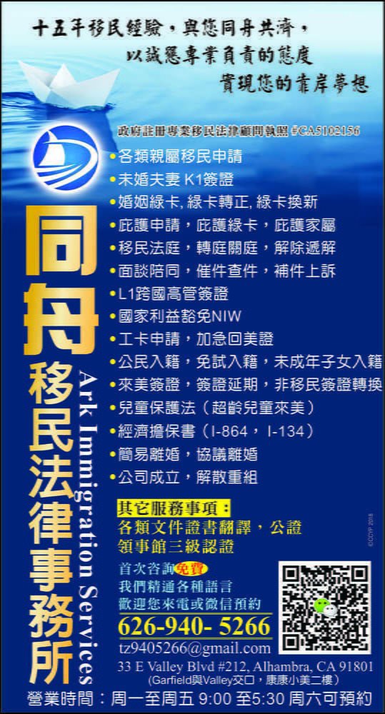 同舟移民法律事务所 – Ark Immigration Services-626-226-5675