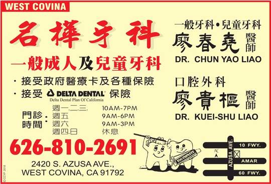 名桦牙科─廖春尧牙医师 – CHUN YAO LIAO DENTAL CORP.-(626) 810-2691