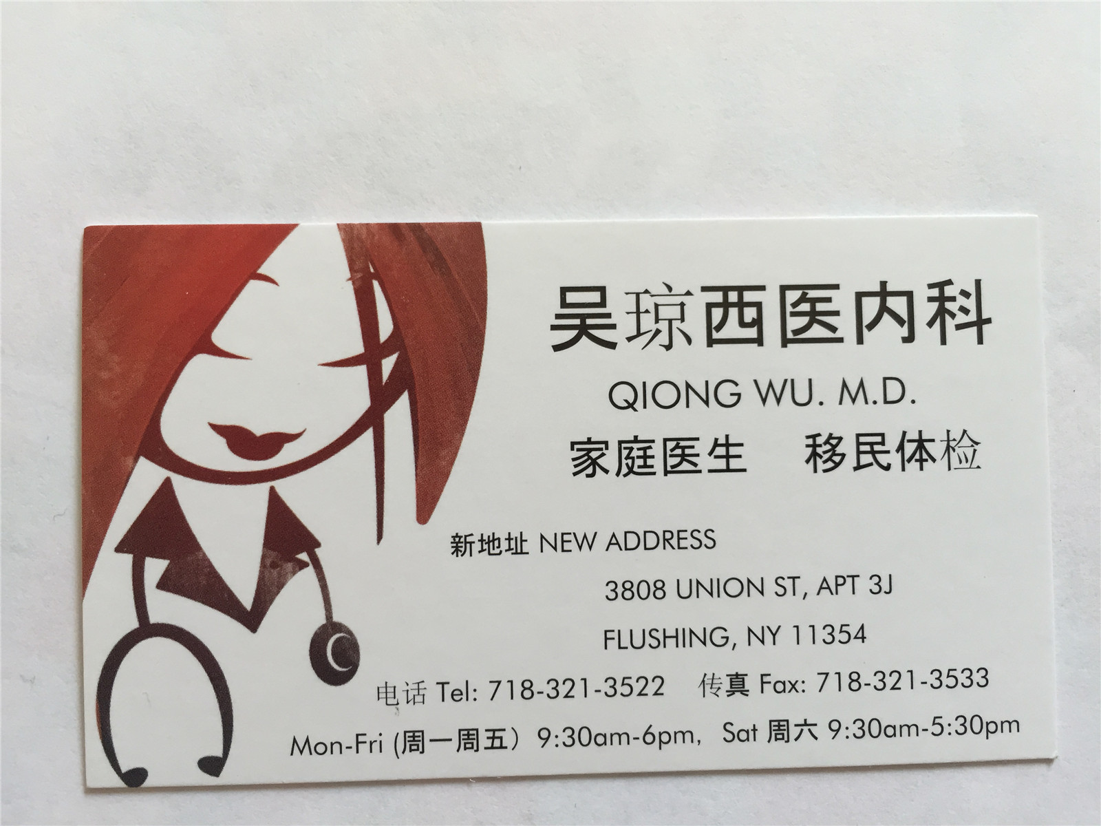 吳琼西醫內科 718-321-3522 家庭医生 移民体检 3808 UNION ST, APT 3J FLUSHING, NY 11354