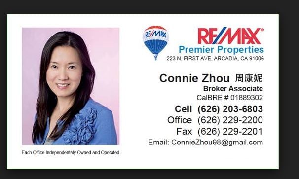 周康妮 – Connie Zhou 地产经纪,商业,住宅,洛杉矶房地产,加州房地产 626-203-6803 http://www.lovelahome.com