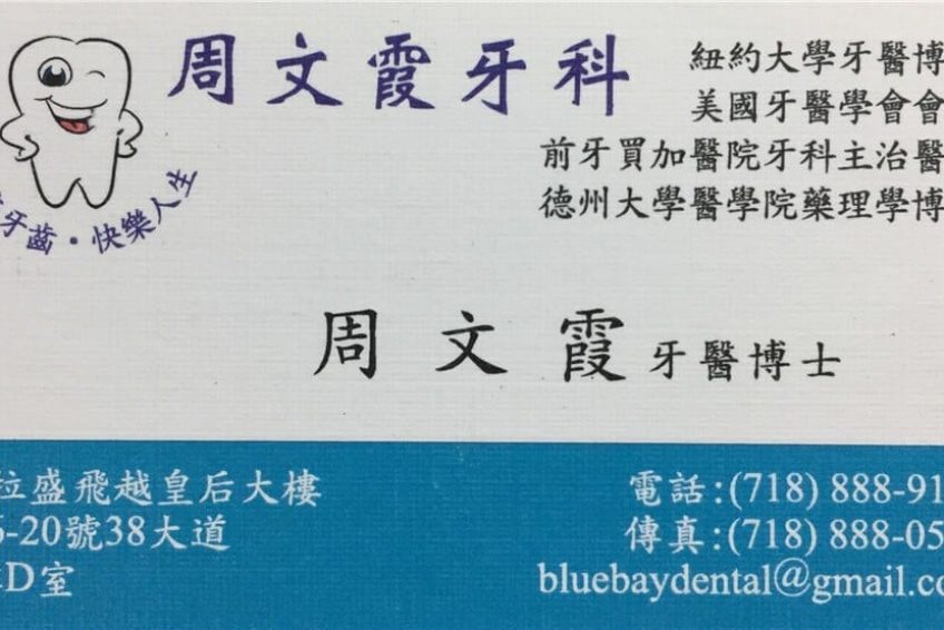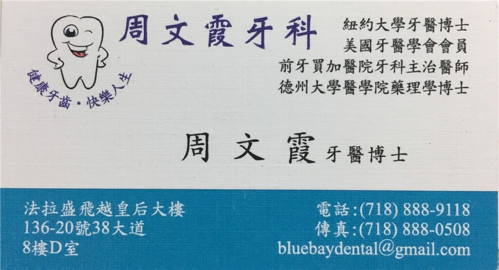 周文霞牙医博士 美国纽约州皇后区法拉盛