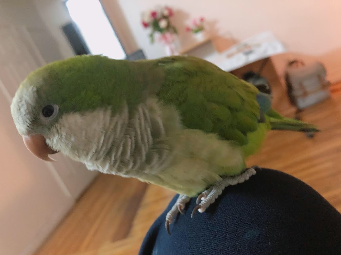 特種鸚鵡(monk parakeet),一歲三個月,雄性,非常聰明溫順。會簡單說話,經常飛到肩上、手上,喜歡跟主人玩。現因家中無法飼養,忍痛割愛贈予愛鳥者,還有大型鳥籠和一大袋飼料。