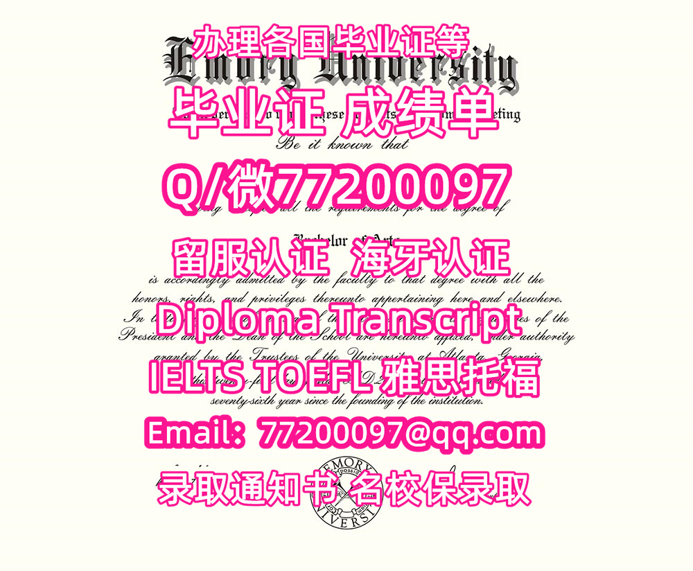 售卖各国文凭Emory毕业证书纸质版埃默里大学毕业证学位证书Q/微:77200097有Emory文凭证书精仿Emory学位证书能办Emory成绩单制作埃默里大学文凭证书雅思托福Emory University Bachelor/Master Diploma Degree Transcript