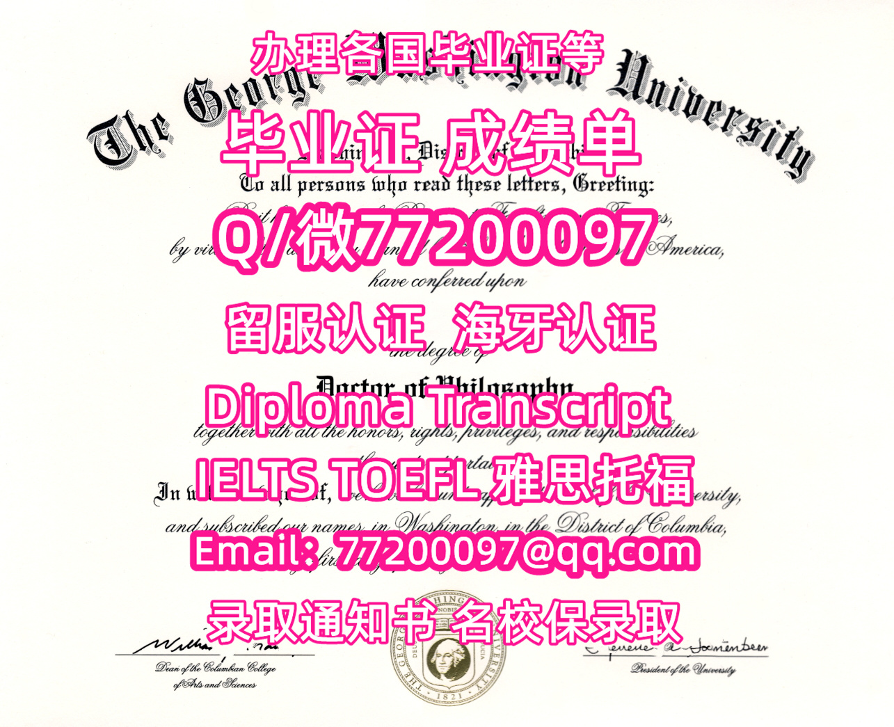 售卖各国文凭GWU毕业证书纸质版乔治华盛顿大学毕业证学位证书Q/微:77200097有GWU文凭证书精仿GWU学位证书能办GW成绩单制作乔治华盛顿大学文凭证书雅思托福George Washington University Bachelor/Master Diploma Degree Transcript