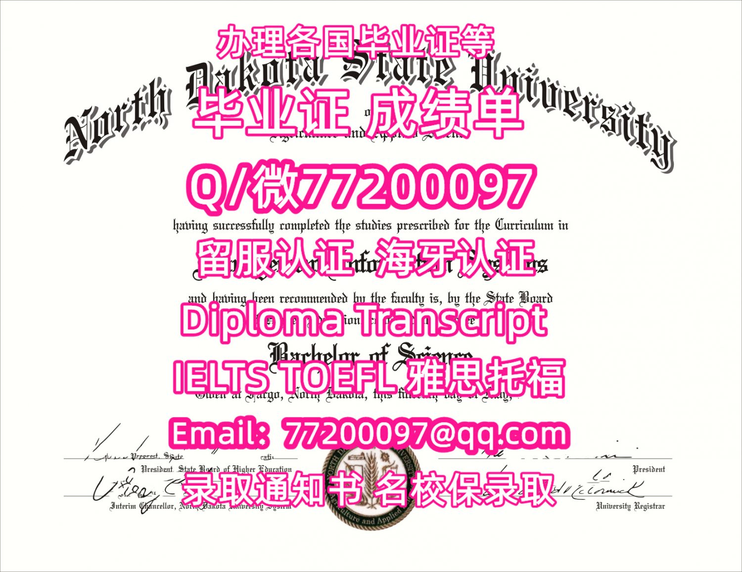 售卖各国文凭NDSU毕业证书纸质版北达科他州立大学毕业证学位证书Q/微:77200097有NDSU文凭证书精仿NDSU学位证书能办NDSU成绩单制作北达科他州立大学文凭证书雅思托福North Dakota State University Bachelor/Master Diploma Degree Transcript