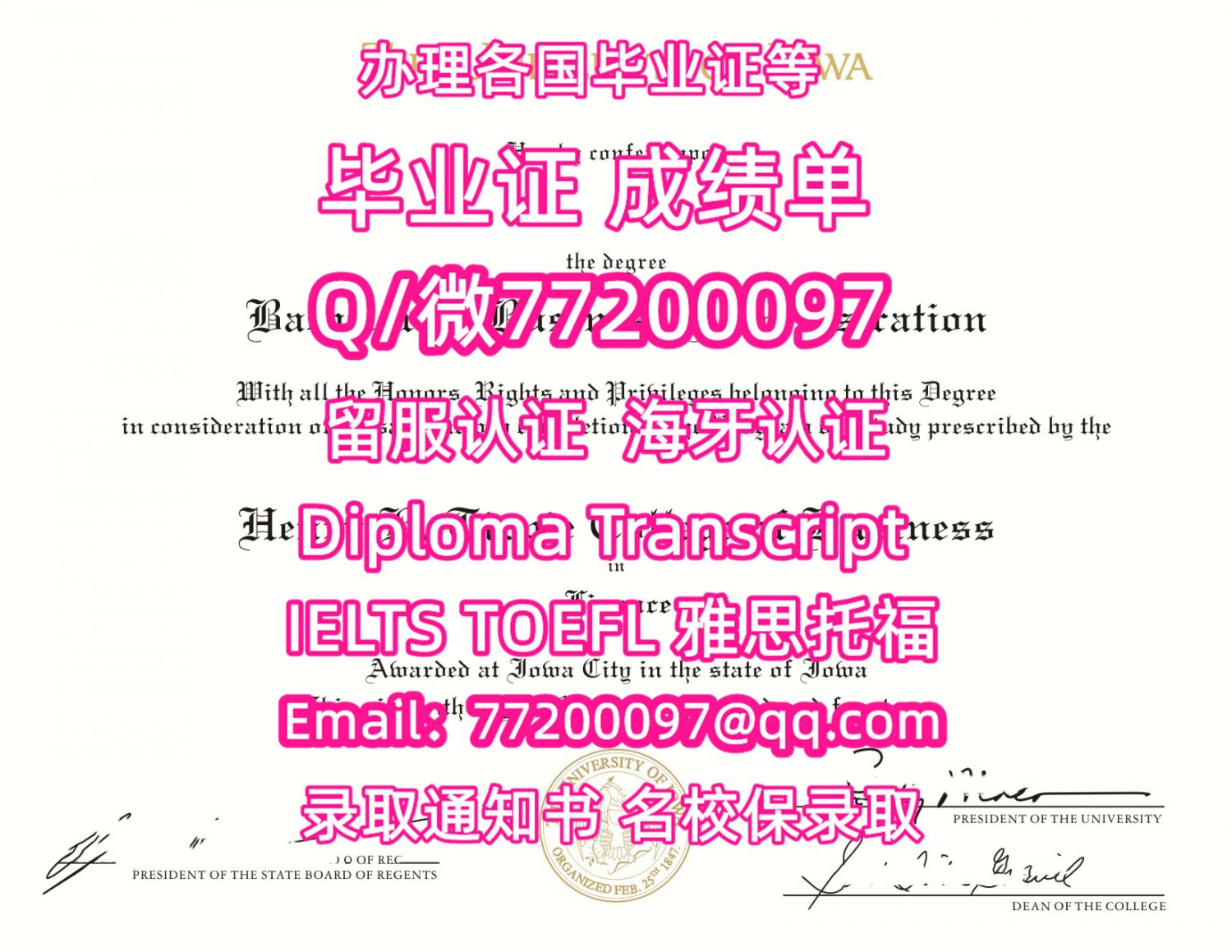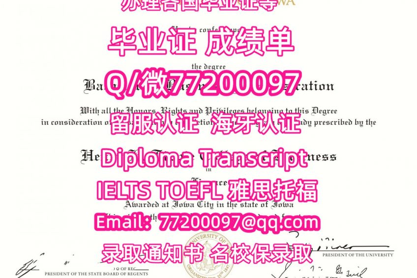 售卖各国文凭U-Iowa毕业证书纸质版爱荷华大学毕业证学位证书Q/微:77200097有UIowa文凭证书精仿U-Iowa学位证书能办UIowa成绩单制作爱荷华大学文凭证书雅思托福University of Iowa Bachelor/Master Diploma Degree Transcript