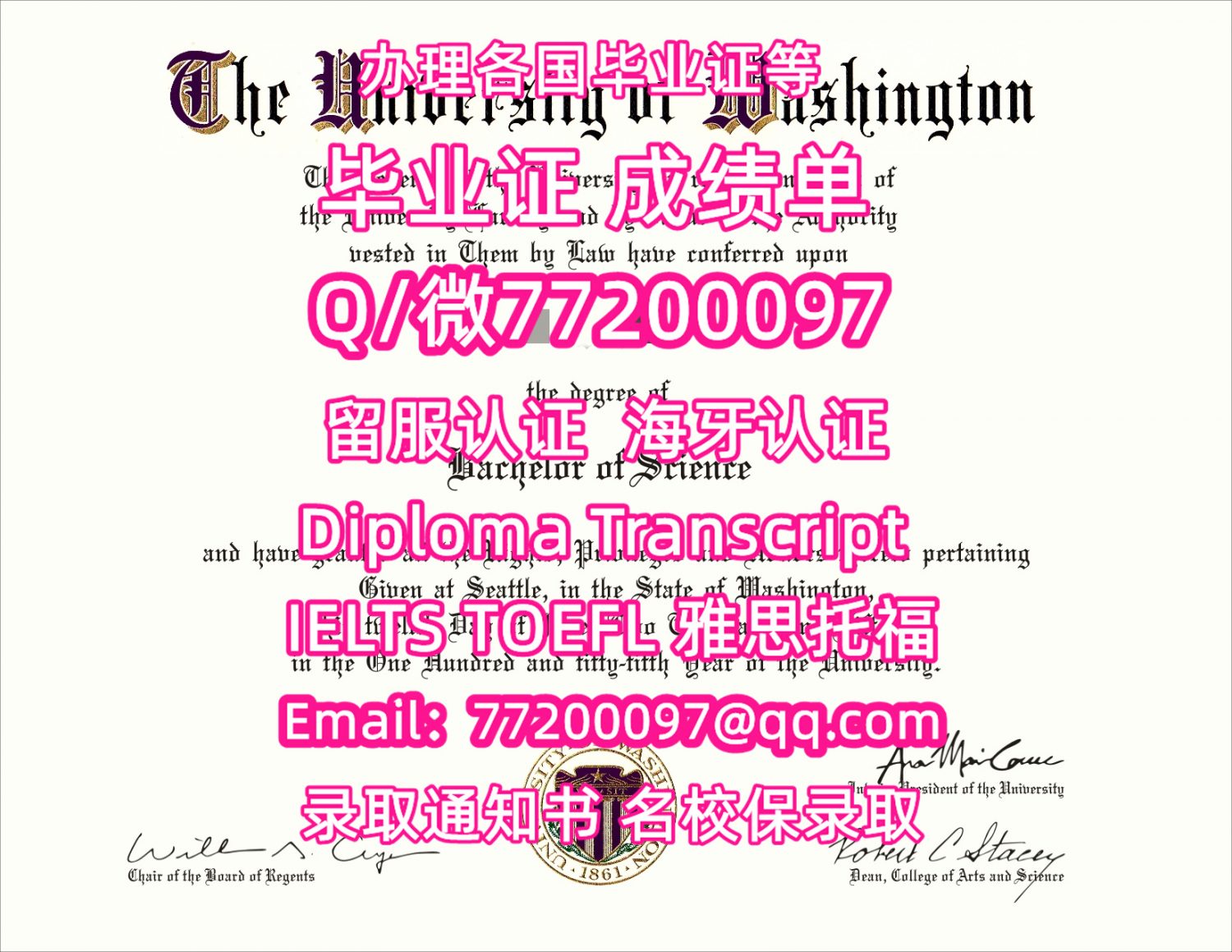 售卖各国文凭UDub毕业证书纸质版华盛顿大学毕业证学位证书Q/微:77200097有UWashington文凭证书精仿UWashington学位证书能办UW成绩单制作华盛顿大学文凭证书雅思托福University of Washington Bachelor/Master Diploma Degree Transcript