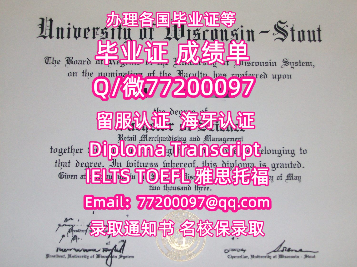 售卖各国文凭UW–Stout毕业证书纸质版威大斯托特分校毕业证学位证书Q/微:77200097有Stout文凭证书精仿UW–Stout学位证书能办Stout成绩单制作威斯康星大学斯托特分校文凭证书雅思托福University of Wisconsin–Stout Bachelor/Master Diploma Degree Transcript