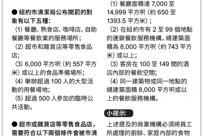● 超市或雜貨店等零售食品店,需要符合以下兩個條件會被市清潔局盯上: