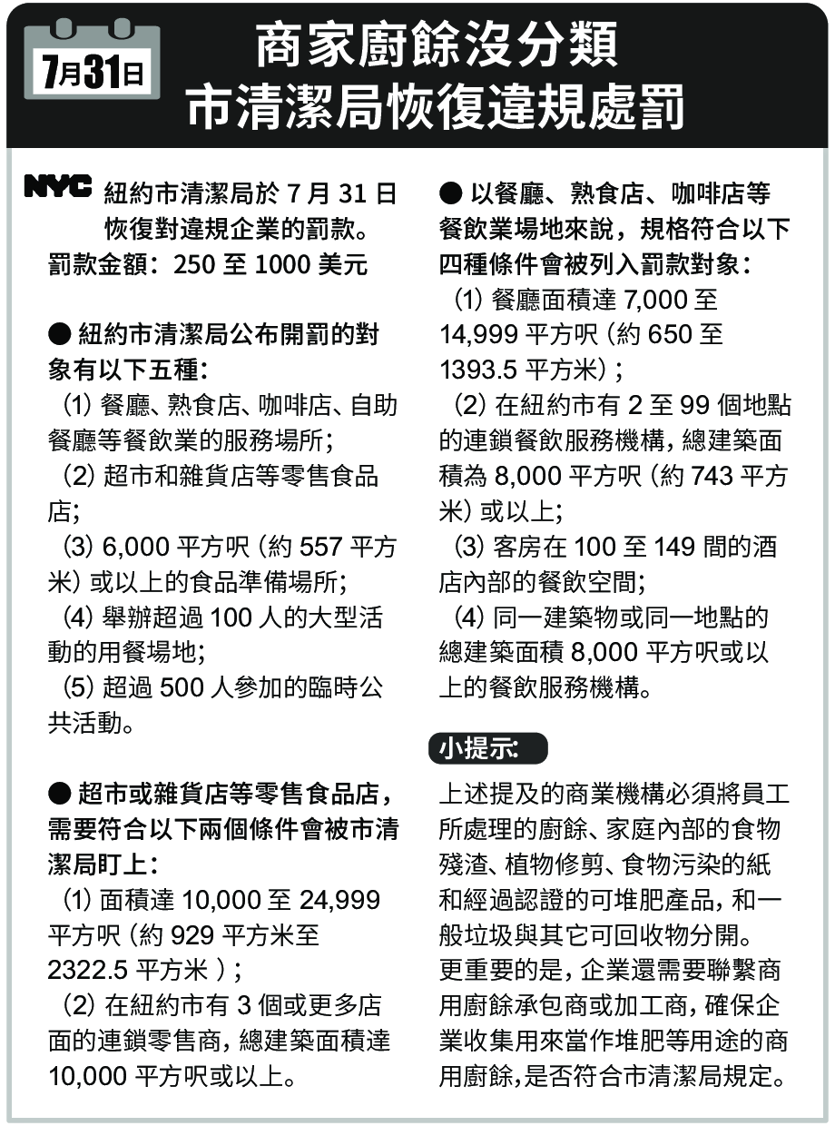 ● 紐約市清潔局公布開罰的對象有以下五種: