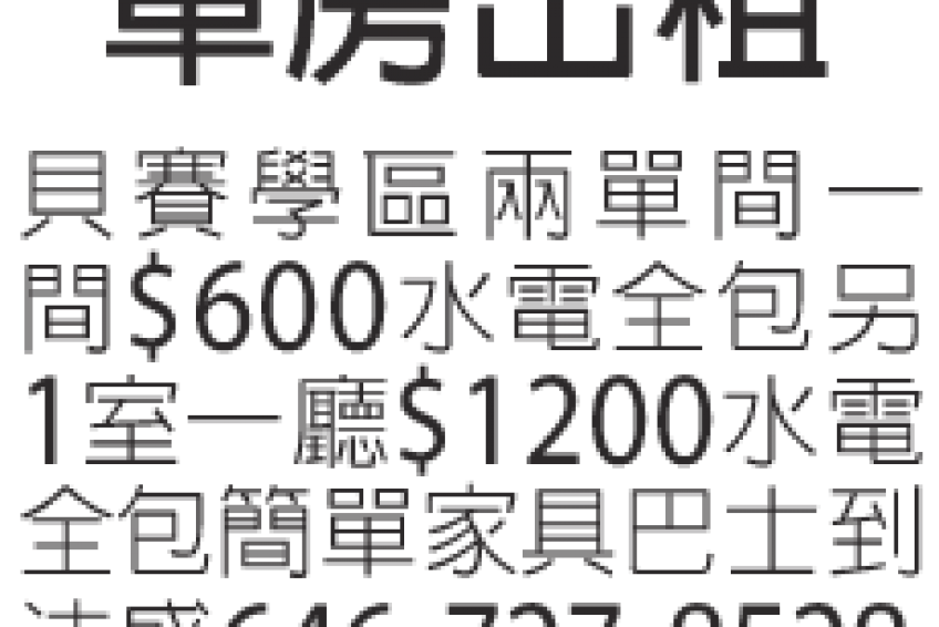 貝賽學區房兩個單間$600一間水電全包另一室一廳$1200水電全包簡單家具坐Q12、Q13到法拉盛646-727-8528