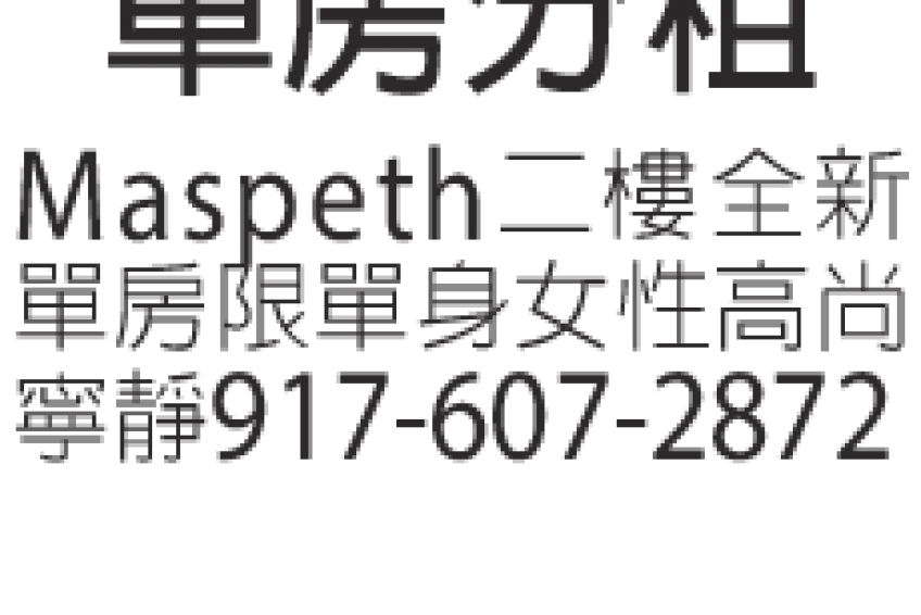Maspeth 二樓全新單方,限單身女性,高尚寧靜,