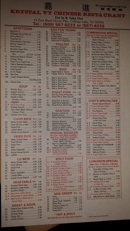 嘉进Krystal Vy Chinese Restaurant(609) 567-8223