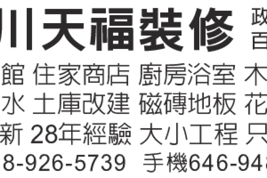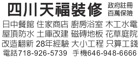 四川 天福裝修 政府註冊 百萬保險 718-926-5739 646-948-6666