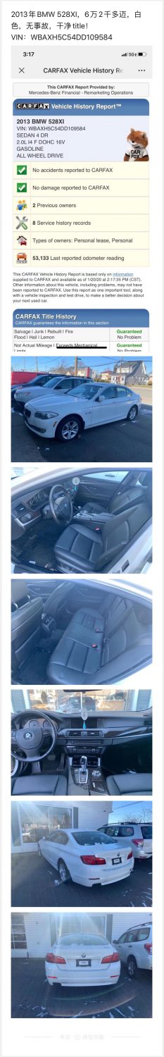 朋友回国,托卖车。2013年 BMW 528xi, 6万2千mile。