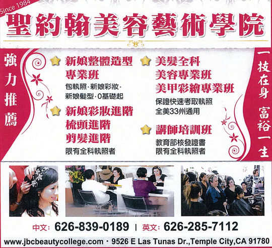 圣约翰美容美髪艺术学校 模特儿,彩妆,美仪广大招生中 – John Ridgel’s Academy of Beauty College