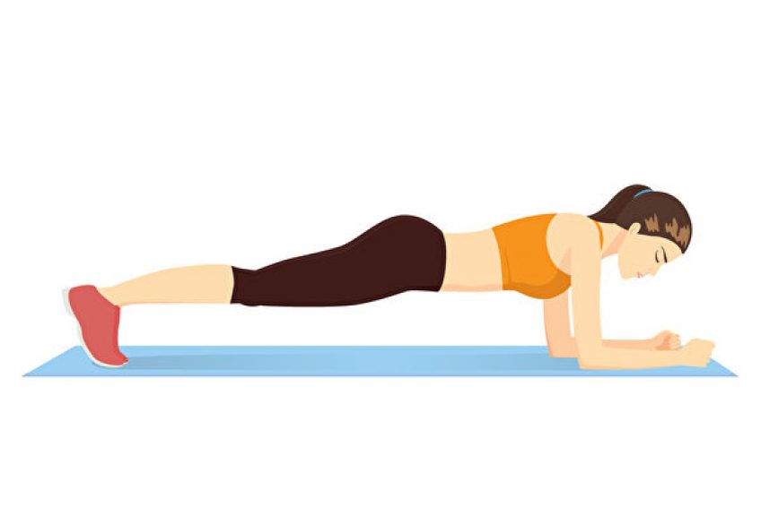 前臂撑地,手肘在肩膀下方,骨盆与上半身和大腿呈一直线。绷紧核心肌群,让脊柱保持稳定。维持这个姿势。