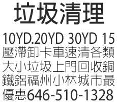 10YD.20YD 30YD 15壓滯卸卡車,速清各類大小垃圾,上門回收銅鐵鋁,福州小林,城市最優惠 646-510-1328
