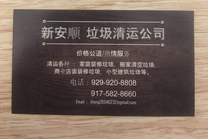 清运各种家庭装修垃圾,店面装修垃圾,搬家清空等。纽约市内和长岛均可。两辆16尺卡车,有执照和保险,诚信可靠,价钱公道。