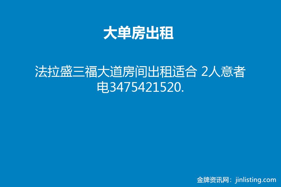 法拉盛三福大道房间出租适合 2人意者电3475421520.